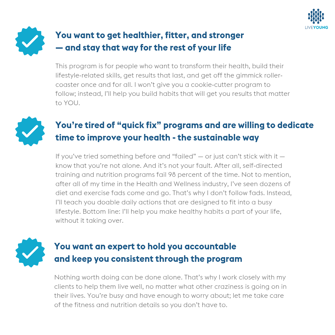 Stick with us for a full year and follow our recommendations. If you don’t get what you’re looking for at the end of the year, I’ll give you a full refund. You get to decide if the program was worth it. Why do we do this? Because we stand by our work. We know you’ll walk out healthier and happier than ever before. All you have to do is take the first step.
